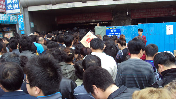 As always we were not the only ones headed into town. My problem was I really really needed a loo and it took a long time to get to a WC and as in everywhere in China people push and shove but I am bigger than them and I had to pee and I was a bit aggro so I pushed and used my arms more than I normally would have. What is so kool here is that I can have a go at saying things to people I would never say if I thought they knew English. In the States they would just shoot me – here they don’t have guns. Not even the police, the few that are visible. Then you see the heavily armed police in American cities and you wonder which system is really working. I know the foreign press really make China look bad, maybe it is – after all they block Facebook and Twitter and my 400 videos on Youtube and that is really quite evil but I think I see more happy people here than in the States. Especially young people, there seems to be a lot of mirth and carrying on amongst them.