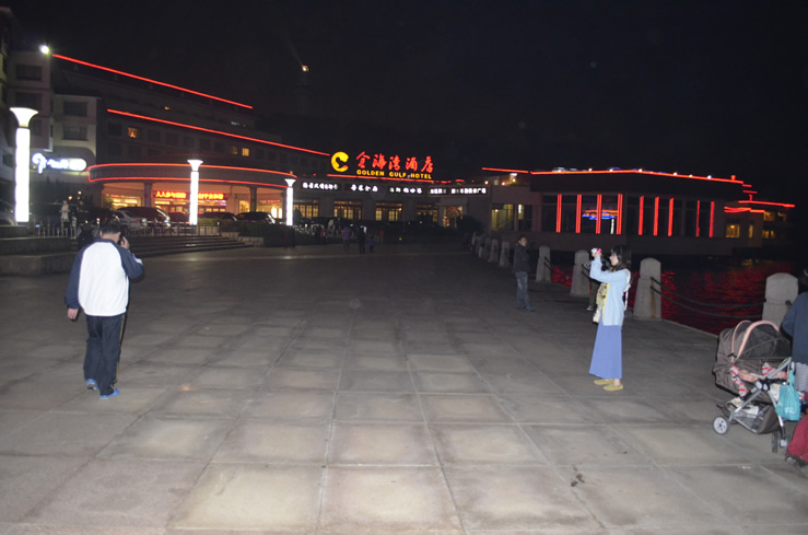 We wanted to go five-star but not at a Western chain so we picked the only 5-star Chinese because we want soft beds and most hotels the beds are incredibly hard. We are staying at the Golden Gulf Hotel – an old hotel right on the shore. And what a great walk along the coast it is. We like this city – so far, the most of any we have been in. We even found the old area, a Hutong, right behind the hotel – kind of a Chinese New Orleans or old town in Barcelona.