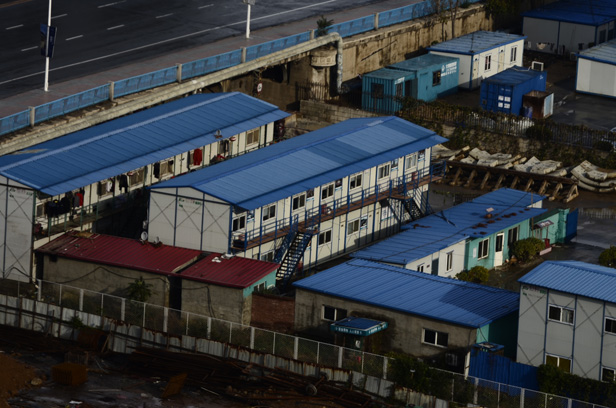 All over China there are these homes for the workers, they are filled with bunk beds and from having peeked into many windows at constructions sites they look quite un-inviting as a place to live.