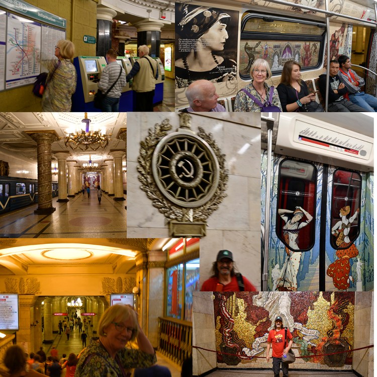 My impressions, to be brief; would love to have spent more time here. Would have loved to have gotten away from our guide – she made me a bit funny in the head. If someone was into history and religion and art the tour would have been good. I had no idea what she was on about most of the time. She took for granted we knew stuff like she would say, ‘as you would remember about Catherine…. As you would recall about St. Paul…. As I told you earlier about Alexander… Really, she thought we knew shit. None of us did. We all just wanted to take photos and wander around and see how ordinary people lived. The palaces and cathedrals were amazing but we didn’t need to know every grubby detail about every painting, every Russian hero. She surely did not speak well of Germans – I suppose because they dropped a few bombs here and there. She was a real commie, often injecting in her own world view and telling us how much better Russia was before it fell to pieces. Narda asked her some questions about life before the fall of the Soviet Union and she said life was easier then; they all had free education and medical, that now there is much more distance between the rich and the poor. Interesting.