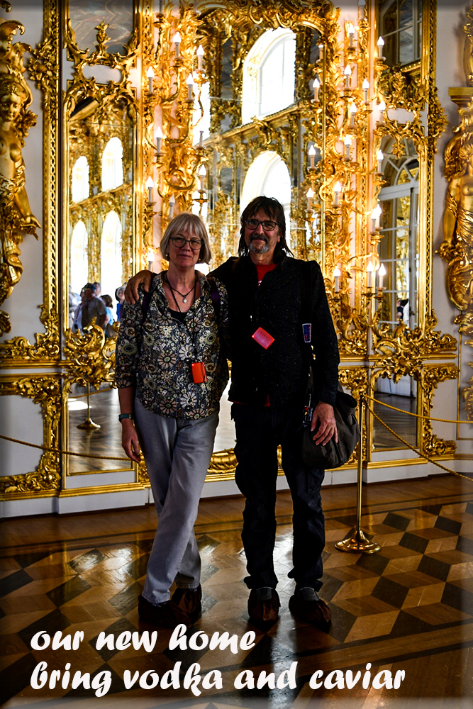 My impressions, to be brief; would love to have spent more time here. Would have loved to have gotten away from our guide – she made me a bit funny in the head. If someone was into history and religion and art the tour would have been good. I had no idea what she was on about most of the time. She took for granted we knew stuff like she would say, ‘as you would remember about Catherine…. As you would recall about St. Paul…. As I told you earlier about Alexander… Really, she thought we knew shit. None of us did. We all just wanted to take photos and wander around and see how ordinary people lived. The palaces and cathedrals were amazing but we didn’t need to know every grubby detail about every painting, every Russian hero. She surely did not speak well of Germans – I suppose because they dropped a few bombs here and there. She was a real commie, often injecting in her own world view and telling us how much better Russia was before it fell to pieces. Narda asked her some questions about life before the fall of the Soviet Union and she said life was easier then; they all had free education and medical, that now there is much more distance between the rich and the poor. Interesting.