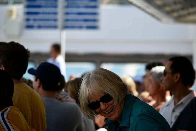 We spent the rest of the day wandering around the ship. We even played a game of shuffle board; Narda had never heard of it and I played once at some Bible Camp my parents would send me, kicking and screaming, to each summer when I was staggering through adolescents in the Catskills. It was an exciting game and after many attempts we each got a thingy on a seven so we decided never to play again as we had tied. There is so much to do. I did go swimming for a few minutes. The pool was good. I wanted to sit in the spa but they had a sign warning people with cardiac trips (like an implanted defibrillator/pacemaker), diabetes, and a couple of other things I share with the infirmed – Narda was strongly opposed to me going in, so I didn’t. I thought of sneaking out and going in but our overpriced insurance would not cover me if I had ‘an incident’. Stuff them all I still enjoy myself. We both went to the fitness area and tossed about some weights. I went most days but my sidekick went just this first day. There is a large casino area which we gave a miss to. It seems such a waste of time to give more money to this company, sitting in front of a pokie like an idiot waiting for a possible coin to fall when some several childish characters line up on the machine. But people do. And they have the roulette tables with more people doing that instead of eating at the buffet or looking at the world outside passing by.
