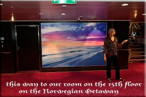 Narda pointing the way on the 15 floor to our room