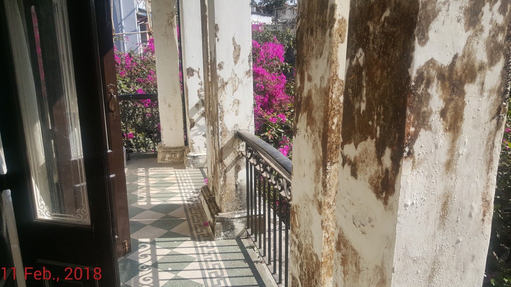 We are at the Bentley’s Hotel, http://bentleyshotel.com/, a budget hotel, but highly rated in various places. Our room is huge, especially compared to where we have been lately. It is the size of two, perhaps even three, rooms, with a balcony, ten-foot ceilings, and finally, fast internet, like about 24 Mbps. The last place we stayed at we got to about a half Mbps (Megabits per second), never made it to one, and the place before, about one-fourth that, meaning I could not plaster the internet with my videos. The balcony is large and a great place to read, write poems, novels, film scripts, blogs, and to paint, draw, plot new travels, and to observe the state of mildew on Mumbai’s building. (BTW, we did not do all those activities)