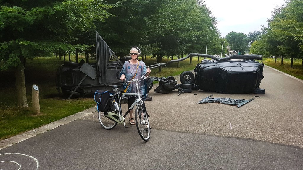 There is this groovy sculpture (see below) called ‘Barricade’ of a car that blocks part of the entrance to the park.