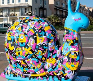 The snails… Apparently there were 50 unique Snailspace sculptures which were auctioned off in December, so lucky us to see them(?). It was all for a good cause, a charity, Martlets providing people affected by terminal illness in the community. They were hoping to collect 20,000 pounds but I can not find whether they achieved that.