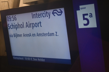 After standing around awhile we realized we had not validated our tickets, ran up a flight of stairs with suitcases and backpacks, cameras, dreams of an easier method, wishes of having slept longer on the plane, and managed to get back down the stairs and into a packed train as the doors were closing. As we were only an hour from Arnhem, we were able to squeeze on and most of the people got off at the next stop giving us proper seats to watch the cold Dutch countryside pass by.