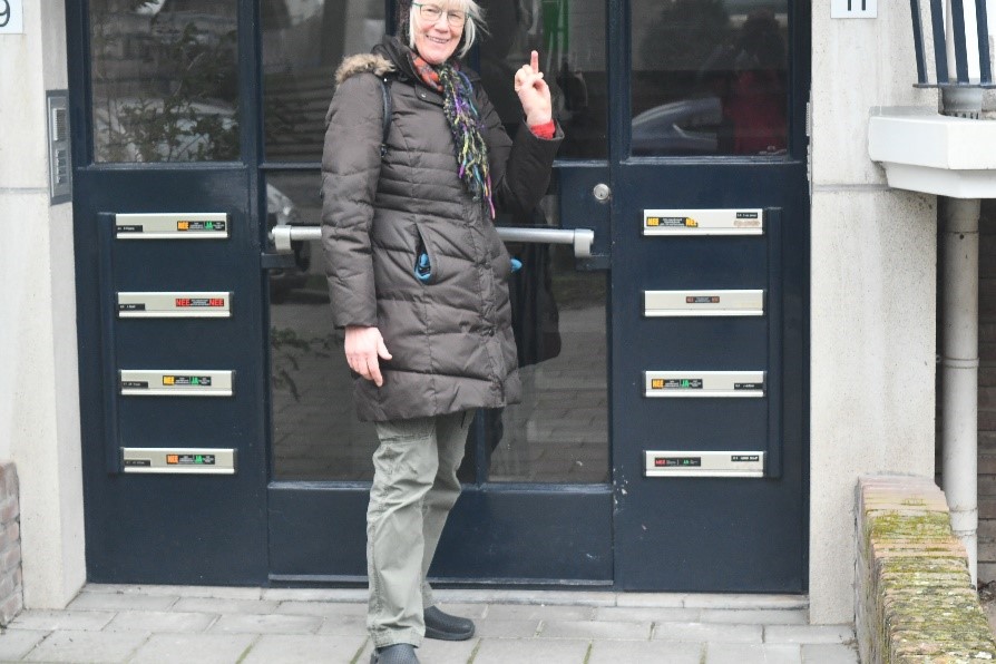 February 17, 2020 Arnhem Storm Dennis, the second on a Sunday. Becoming a weekly event. This one was fairly fierce but did not start until later in the day. We arrived in Haarlem on time after a short connecting ride on bus #300. My cousin (she’s actually my mother’s cousin) was waiting for us at the stop, in the rain! She lives with her husband in a very interesting neighbourhood of architecturally designed modern homes, full of light and style.