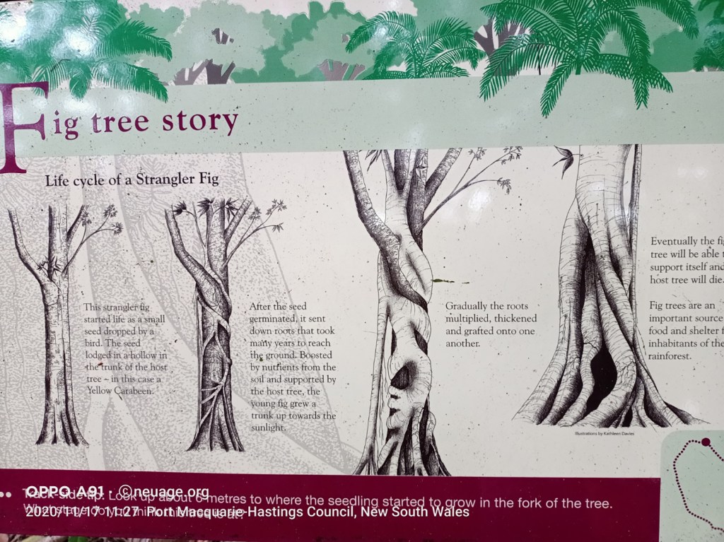 Strangler figs abound. They grow from the top down, wrap their tentacles around the host tree, which dies in time, leaving a (often enormous) hollow strangler fig, which provides food for the inhabitants of the forest.