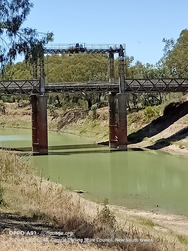 Clean bathrooms and showers and quiet. We left the next morning @ 7.30 AM, stopping for coffee and a couple of hour later in the town of Wilcannia. This was the third largest inland port in the country during the great river boat era of the mid-19th century. At the 2016 census, Wilcannia had a population of 549. We had heard/read quite negative things about this town, though all we saw were closed shops with bars over the windows. We had a bit of lunch alongside the Wilcannia River. Narda, as she does, found some lads fishing and sat down and had a conversation with them about fishing, school, the river…’the river has gone down a lot over the years’.