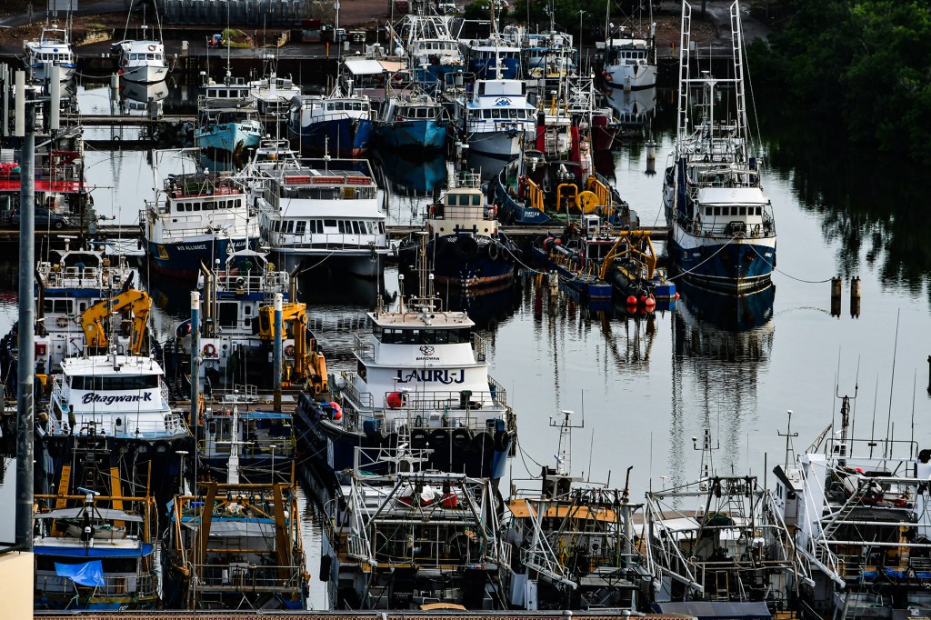 A view of road-trains loading up the morning’s catch on their way across Australia