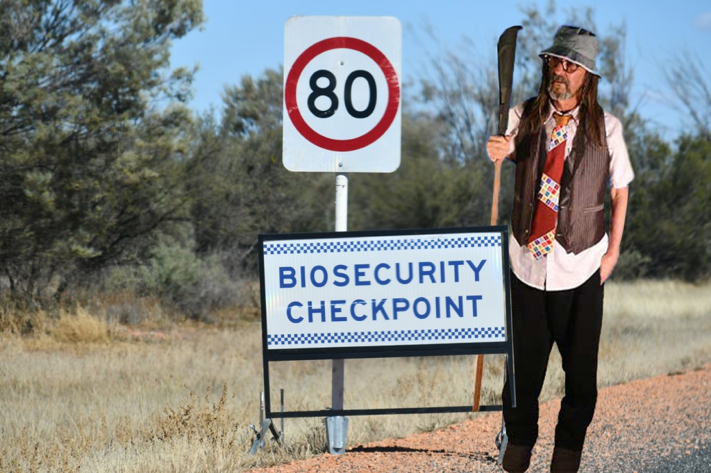 We stopped at a petrol station hoping to have brekkie there, but the sign on the door said, no entry if you have been interstate in the past 2 weeks.