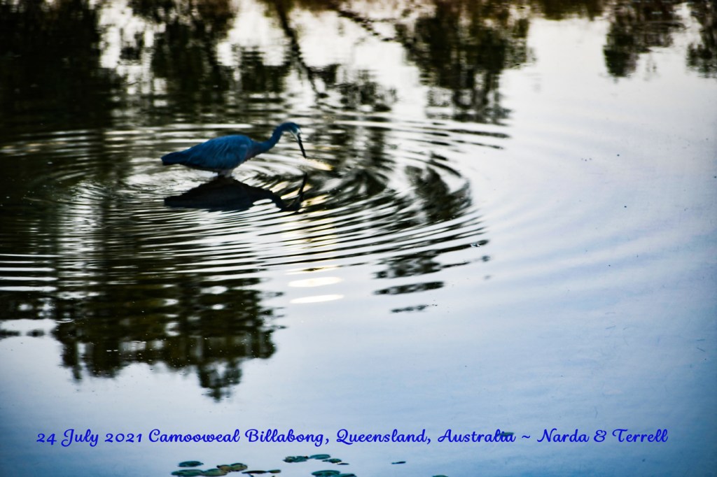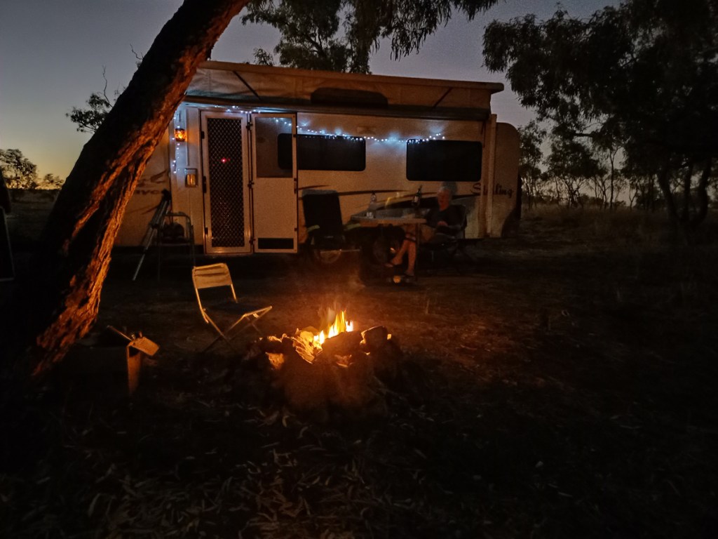 A couple of hours drive and we are at this town 12 Km from the NT border. We followed the Camps 8 directions, past the bridge, turn north, 2 Kms of dirt road and here we are. An amazing site, with our own little billabong, birdlife, 2 fire places and absolutely no road noise. Magic. It’s so quiet and private….