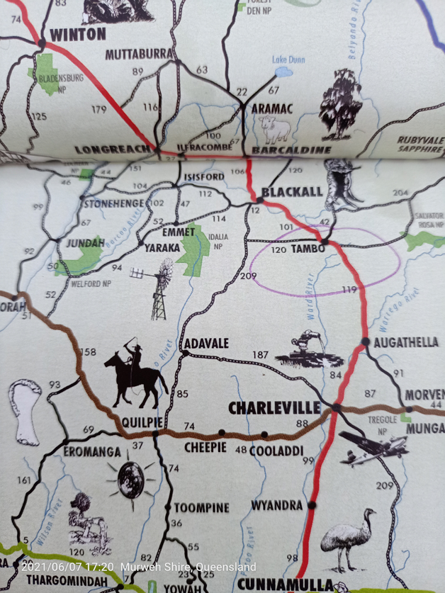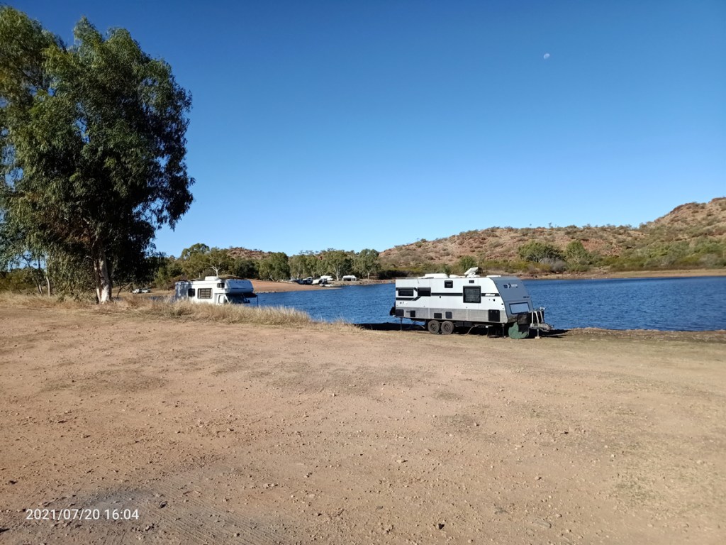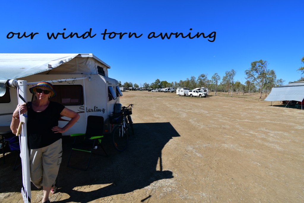 Then…..a wind gust tore the caravan awing. We tried taping it, but the more we tried the more it ripped. In the end I phoned Jeff Hale (bless) who said to just rip it right off, take all the canvas off. It worked, we folded the frame back into place and the next morning we were happily on our way. I made a phone call to a guy in Mt Isa to see if he could repair it. It will be an insurance job, but he said he could do it, but the awning would have to come from Brisbane which would take two weeks. So we decided to leave it until we get home to Adelaide (which I’ve just hear is in a 7 day lock down…schools closed etc, because of some Covid cases with the Delta strain in Modbury Hospital.