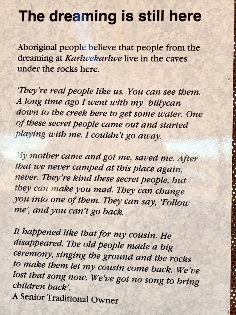 We got through the NT border, friendly cop, chatty, complaining that this border did not have QR codes like they apparently do In WA. Listening to Imran Kahn’s CD. Very interesting perspective on the USA after 9/11 and how they waged a “war on terror” costing many thousands of lives in the Muslim community world wide.