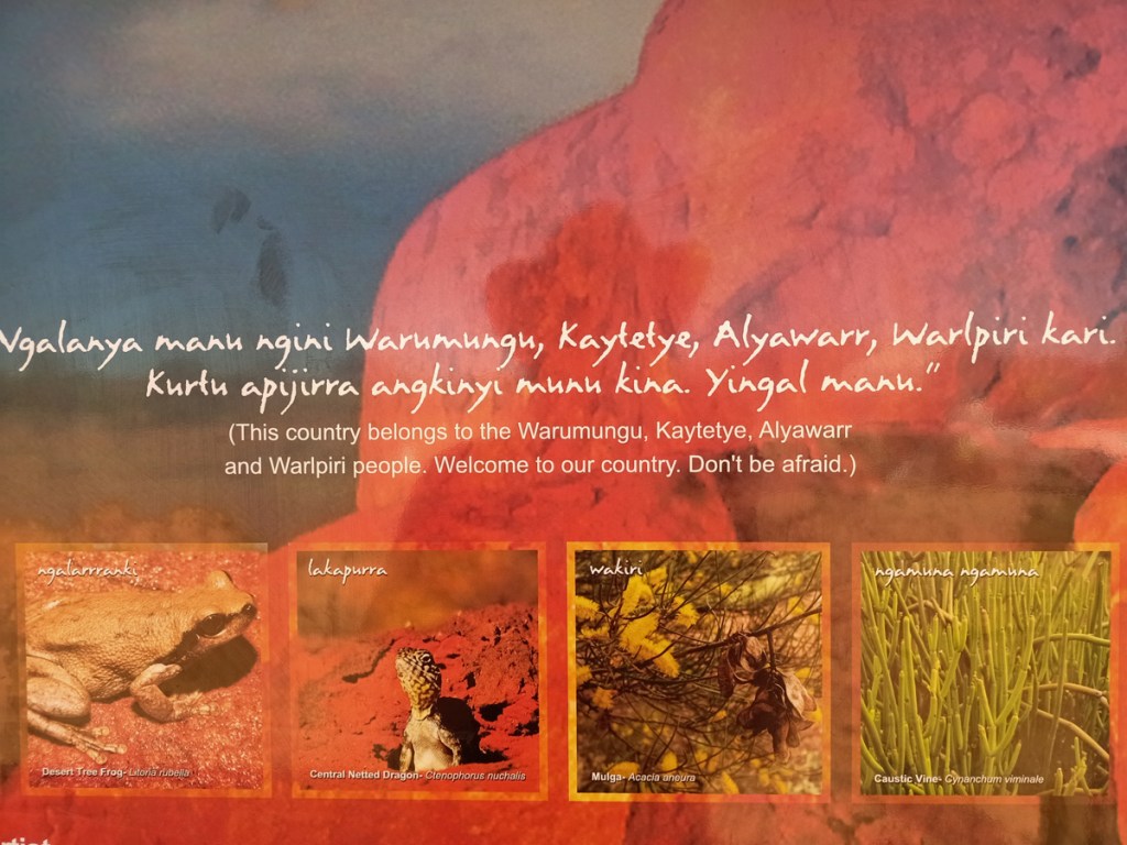Alice Springs is set amongst rocky hills, which reflect the sun and it make quite a colourful sight. It has a central area, usual shops, and a huge police station and Federal Court buildings! We bought a nice music box at a jeweller for Mabel’s birthday in the shopping mall.