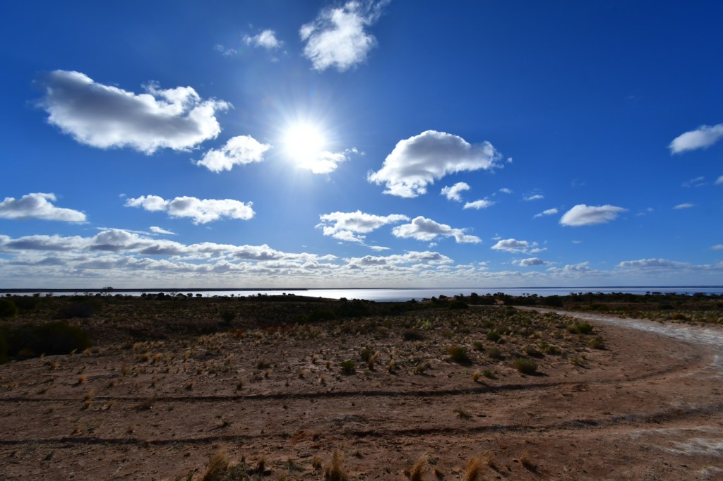 So onward to Lake Hart, a huge salt lake we have camped at before, back in 2017. We are a bit low on supplies, so we’ll be using some tins, and bits and bobs. Nothing too flash, but it’s a beautiful spot. Definitely back in the winter zone, coats and beanies. And I have a little stash of Peter’s drumstick, double choc. My new favs.