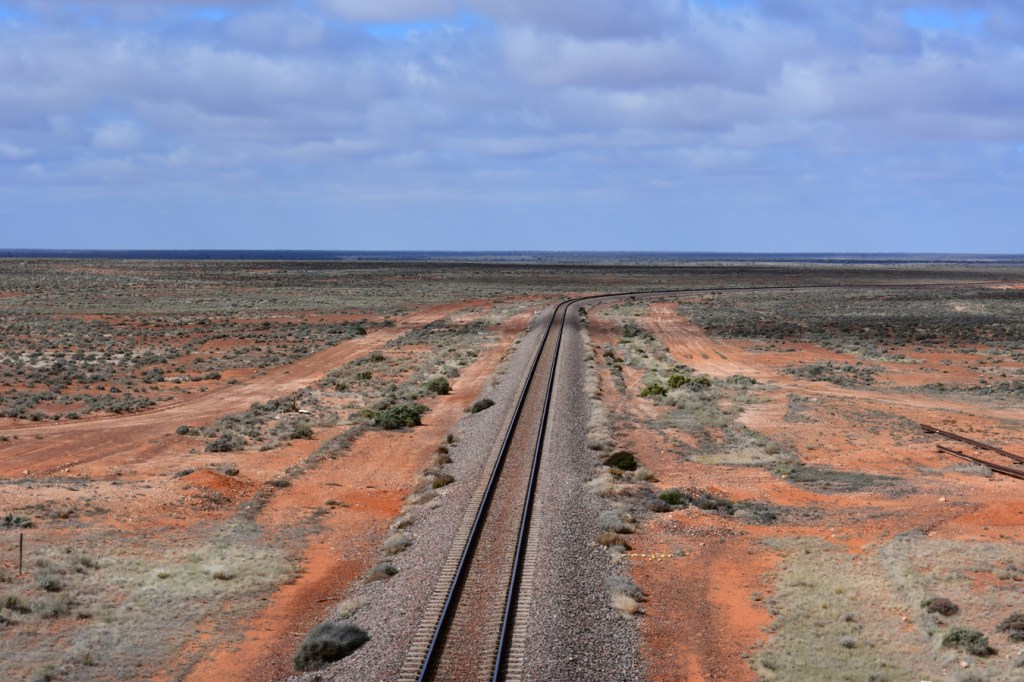 A nice site in Pt Augusta. We did not expect this. The caravan park was right on a water passage with long goods trains on the other side, really long! We set up camp, checked out the facilities (clean, new and pleasant , with a radio playing there all the time. Also a very well equipped huge camp kitchen, where we happily watched the news with the whole place to ourselves, the first time in quite a while.