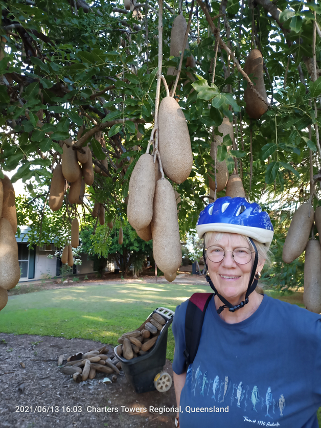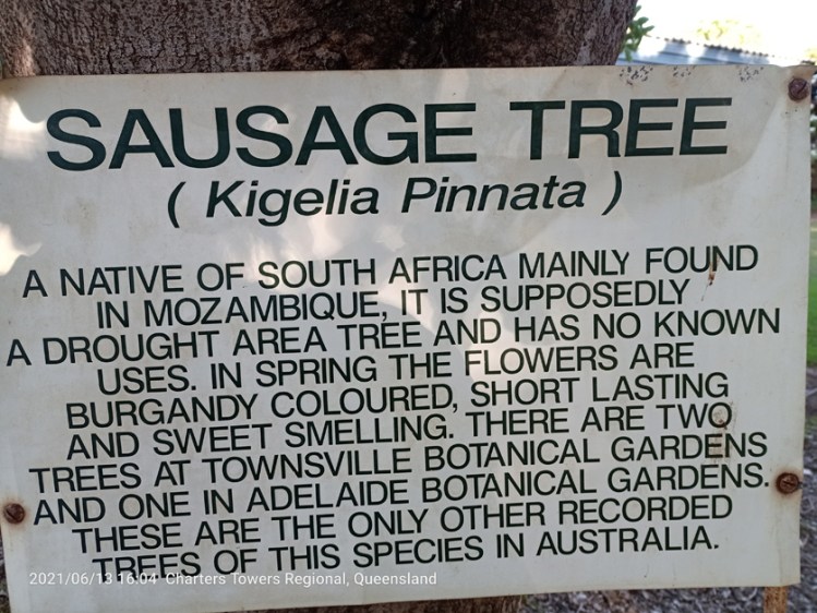 A little town that boasts one the few sausage trees in the world. We went into the caravan park full of galahs, ducks and turkeys. Quite a racket. Luckily they all went to bed at night. Another nice little bike ride checking out the real estate.