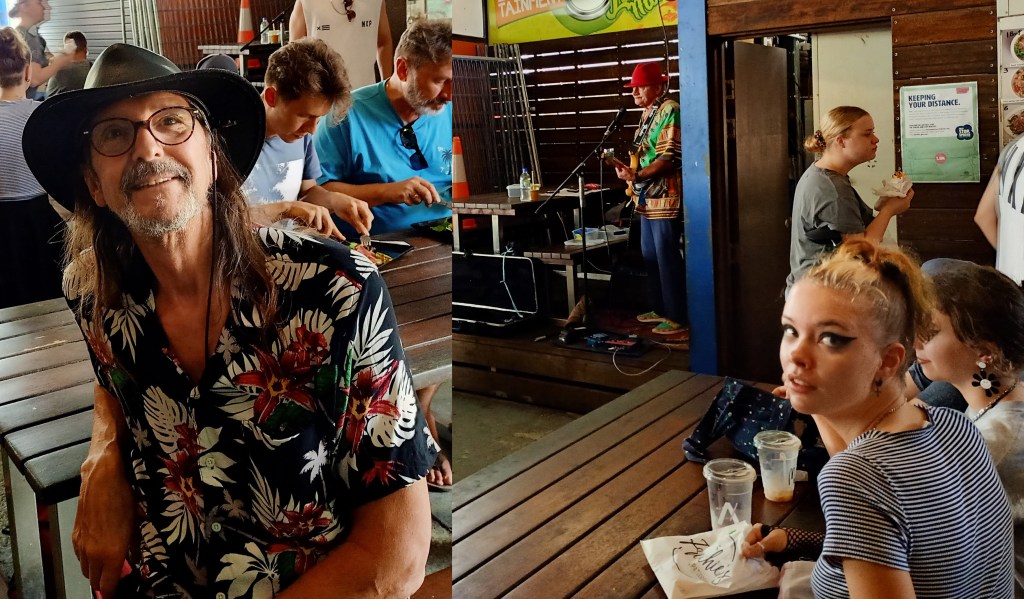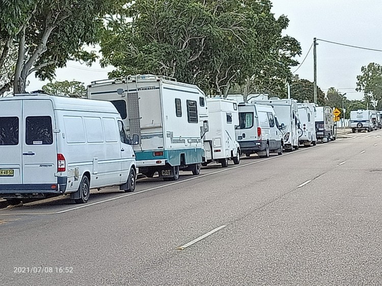 On the Sunday many folks left: end of school holidays. After that we had the van brigade with their young people and sliding doors. Locally called Whizz Bangers. It’s the noise those sliding doors make…all night. We made some friends. A young guy named Nick and his girlfriend of 3 months, Ebony. Lovely people. We met Nick in a laundromat in Mackay and got talking about where we were staying. I told him that if he turned up I would give him a beer😉