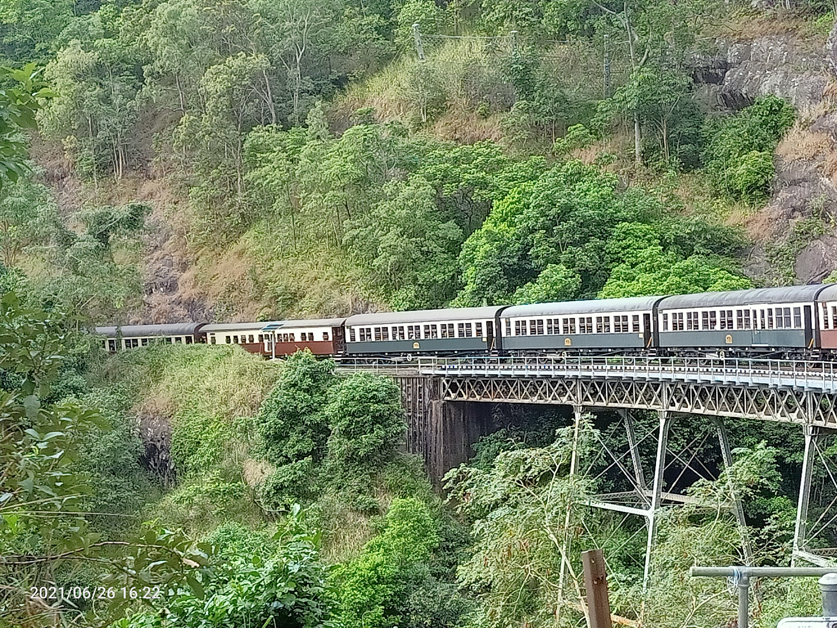At 930 metres (3,050 ft) above sea level, Ravenshoe is the highest town in Queensland, with Queensland’s highest pub. The railway station is where the caravan park is, easily walkable to town. We did a day drive the area going to the Tully Falls and Gorge. Quite spectacular and groovy at the same time.