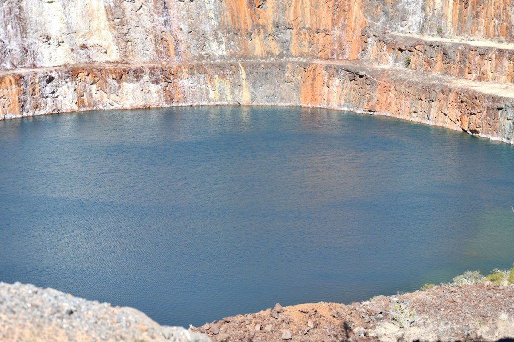 The mine itself was a 6km serious 4WD ride away. A huge place, all in tiers, with a startling blue lake at the bottom. No one can swim there as it is still contaminated. Certainly worth a look, it was just 6 Kms from our camping site.