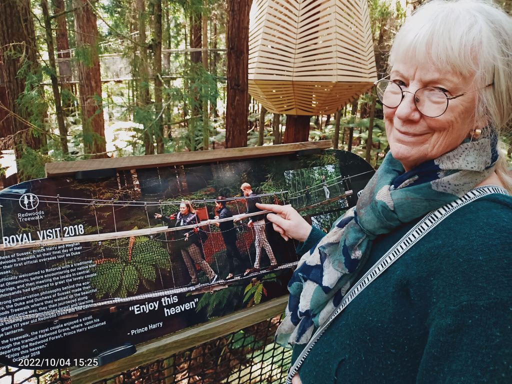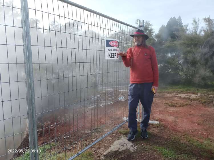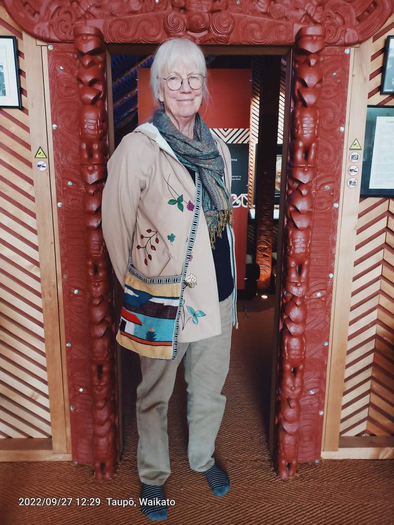 Narda entering a Māori meeting place, place. Of course, we had profound interest in the idea of caravan camping… and of learning about the volcanic activity in our area – Narda has various thoughts of what we should do if there is a local eruption of one of the volcanic mountains or if the lake goes up as it did once-upon-a-time – like will we get an alert?