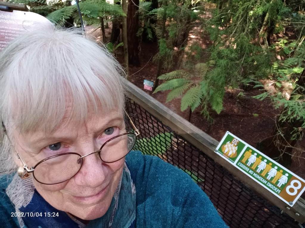 Back home – we have lots of walking areas around Lake Taupo – see our couple of clips – Our favourite spot is this bench in the deepest part of our little rain forest…