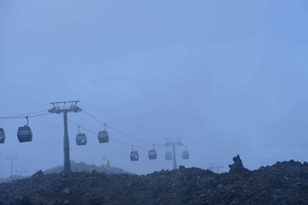 Then on the road again to the ski resort at the next mountain, which was mostly still in the clouds, literally. The trip there was strange. Lots of black volcanic rock and no vegetation.