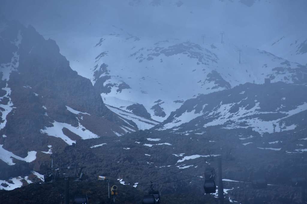 The snow we saw was created by machines, but when there was a break in the clouds you could see the big arsed mountain with real snow. And a gondola taking folks up to it.
