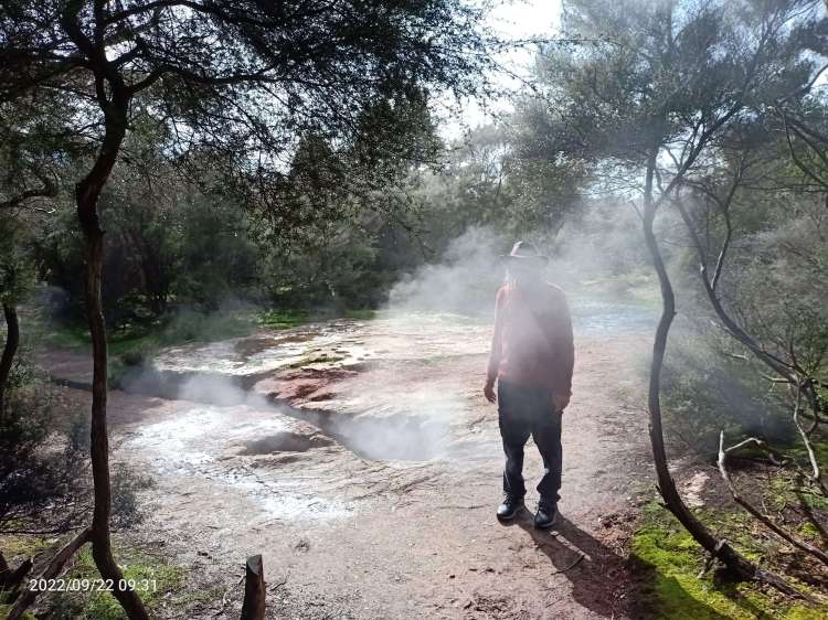 We enjoyed our three days in Rotorua – on the drive to there we were excited by the view of Mount Ruapehu in our rear-view mirror. Narda stopped so I could stand in the middle of the road and get a photo