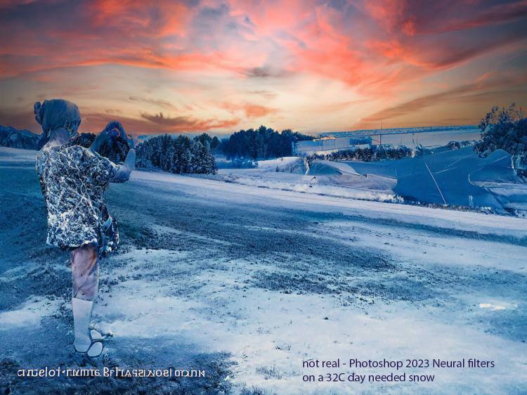 I had a play with Narda taking a photo – because it was getting hot, I thought I would put her into a snow scene – the sky is fake too – actually, most of the photo is. It is the new neural filter in Photoshop 2023 beta…just testing stuff. However, the other photos are true.