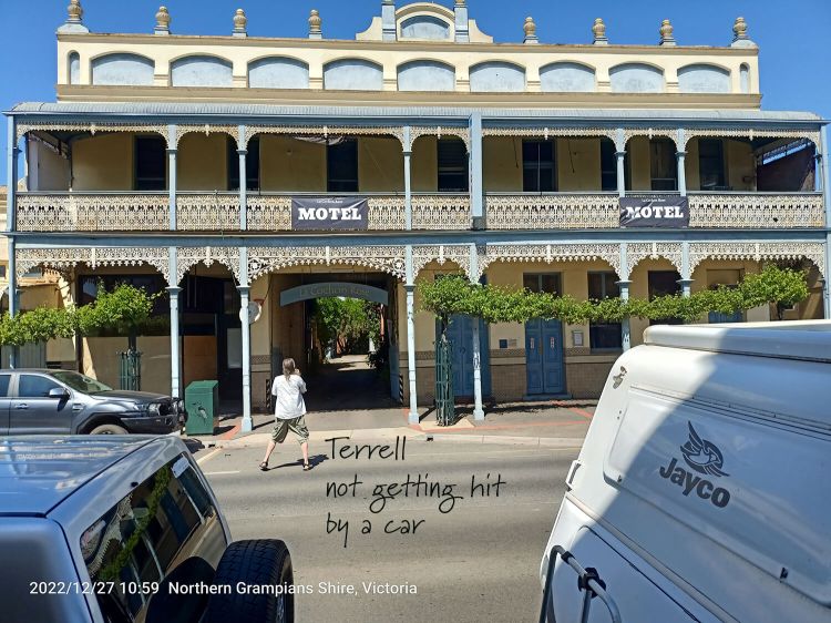 What a beautiful village/town; We got to Warracknabeal (we both had a shot at trying to pronounce it, I think Narda came closest but how would we know?) Decided to cough up $25 to stay at the Warracknabeal Caravan Park as it was too bloody hot (past a hundred in the Fahrenheit world) to sleep in the caravan. We plugged in the AC, tried to take a nap but gave up and had a lovely evening with a pasta meal, sitting outside as the temperature dropped and read our books. I am finishing up ‘For whom the bell tolls’ by Hemingway because we are going to Spain for a month next year and I wanted to know more about their civil war. I had already read George Orwell’s (Eric Arthur Blair) account of when he fought in their civil war, Homage to Catalonia, different from Hemingway as Orwell’s is non-fiction and Hemingway’s is fiction (he was a journalist who visited during the war but as far as I know did not fight in it). It is all quite real with what is happening in the Ukraine now.