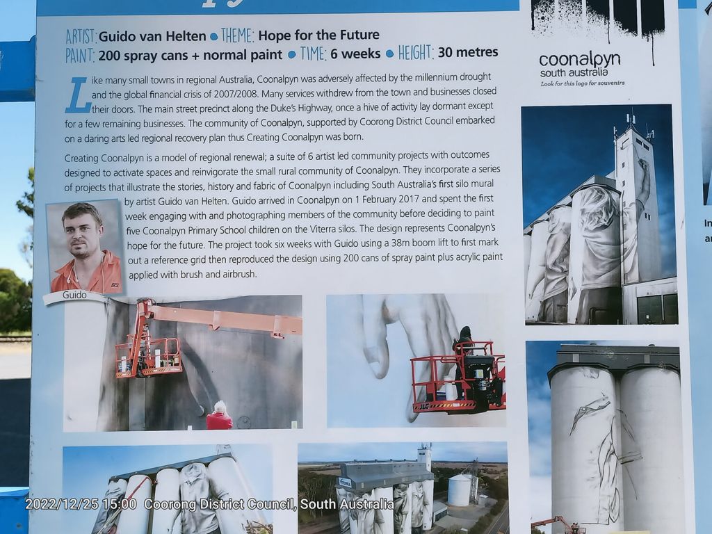 Later on, in a few weeks, on our return to Adelaide we are doing a ‘silo-arts’ tour in northern Victoria. We passed this silo in the small town of Coonalypn (established 1909, currently 350 people).