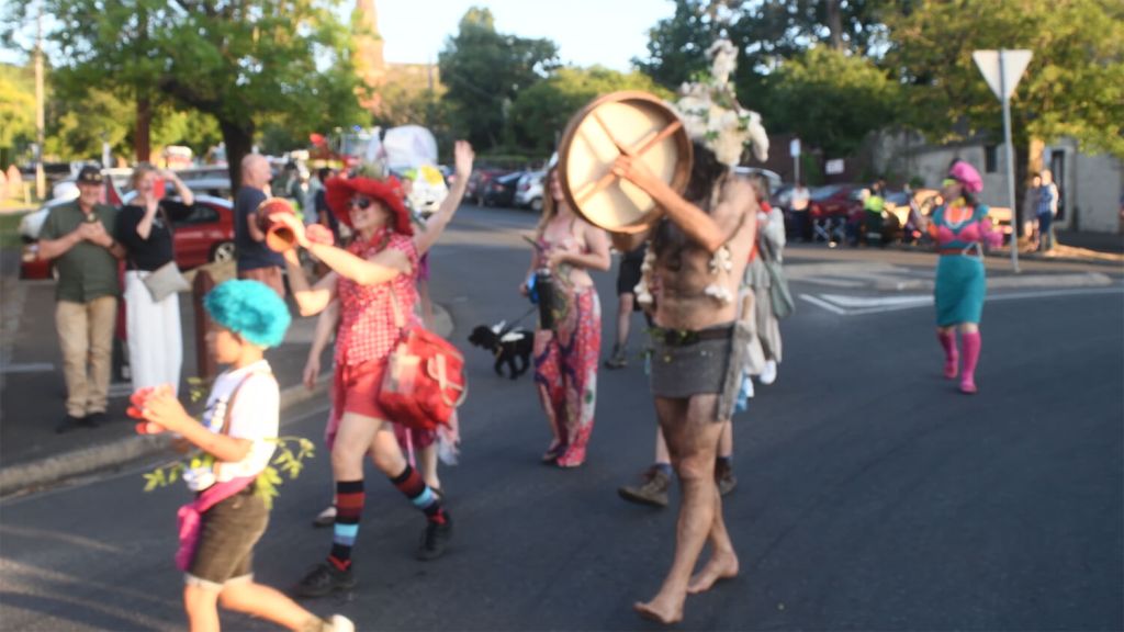 At 8 pm the parade started. A group from the community garden dressed as veggies, a pipe band playing all the traditional bagpipe songs, then there was the huge semitrailer that just made it around the corner. All very entertaining and local. Afterward we bought a packet of drumsticks at Coles and ate them at home, together with several episodes of Irreverant (Netflix), our current favourite show.