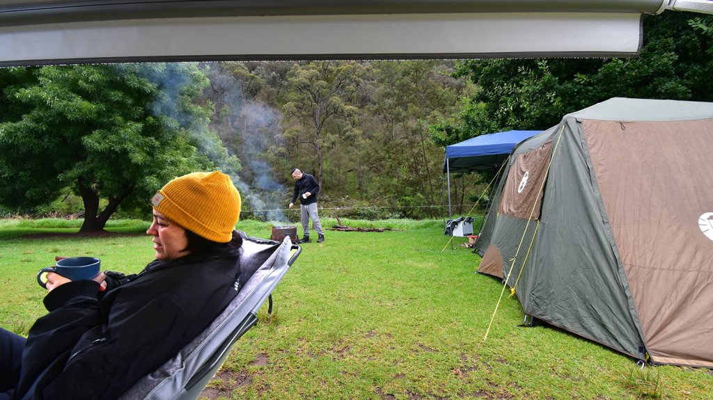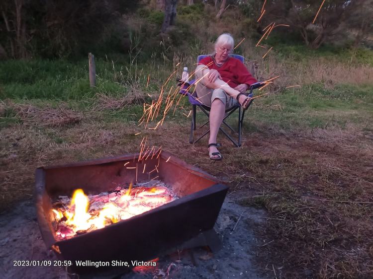 So great having Sacha and Georgia camping with us. It is the first time we did this. It surely will be the way of the future. Other times we get to catch up with them perhaps once in a year when we stay at an Airbnb in Melbourne – go out to dinner – have not too much interaction. Camping for four days… we sit around a fire at night,