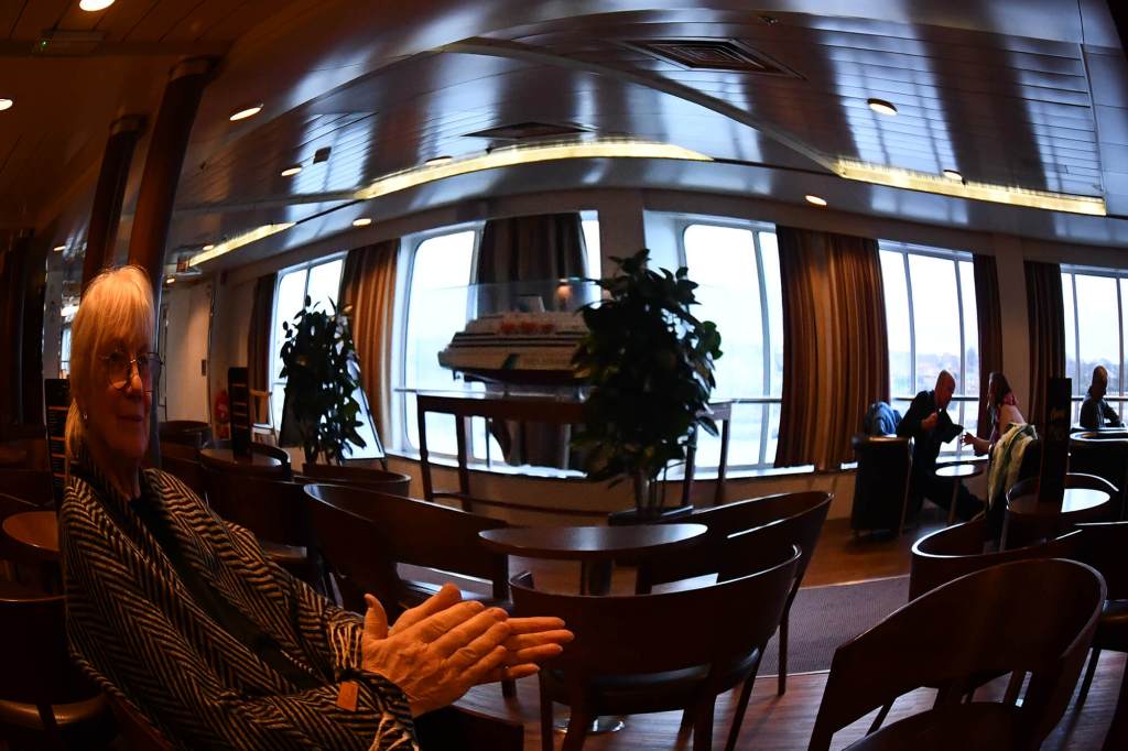 There plenty to do on these ferries, it really is a mini cruise. Duty free shops, night club, cafe lounge with live music and a cinema with crap movies. I met an interesting woman travelling alone name Ellen, from the Isle of Man. She invited us to visit but the ferries are really expensive, so we’ll have to pass on that. But she had plenty of interesting travel tales to tell, including going to Greenland in the winter.