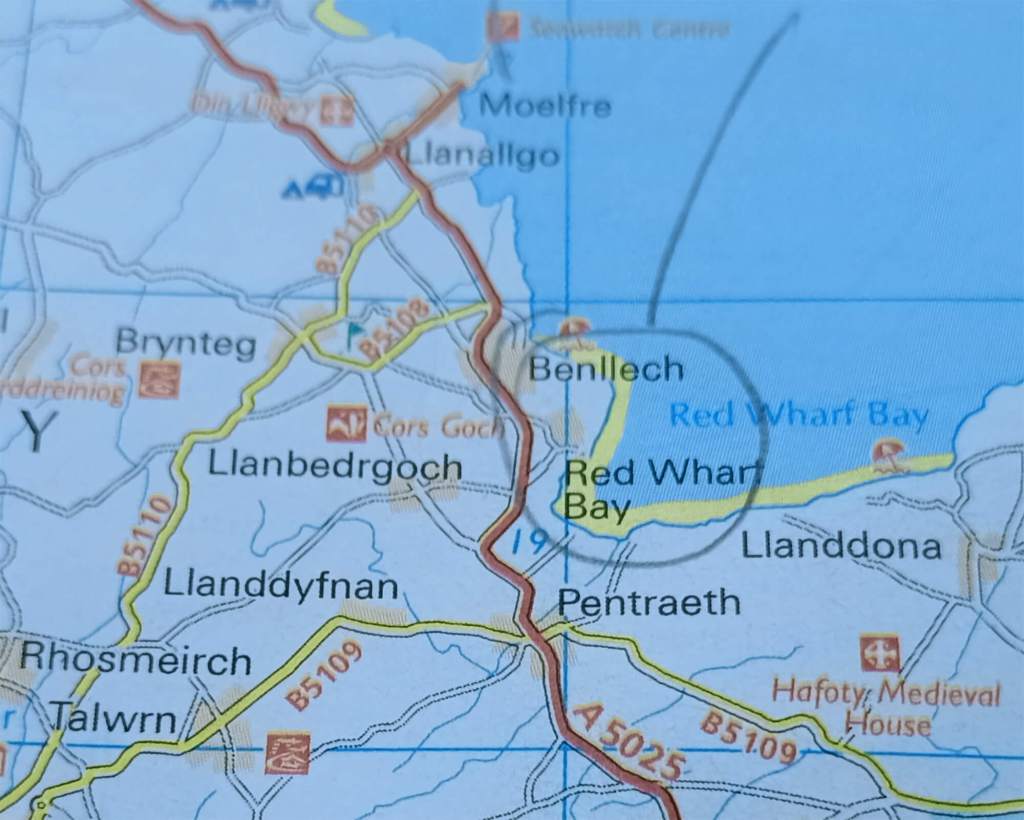 High tide in Benllech. The waves come over the wall and deposit seaweed on the road. Quite speccie, though it’s short lived. We went back to park the car, and the tide had already started to recede when we returned.