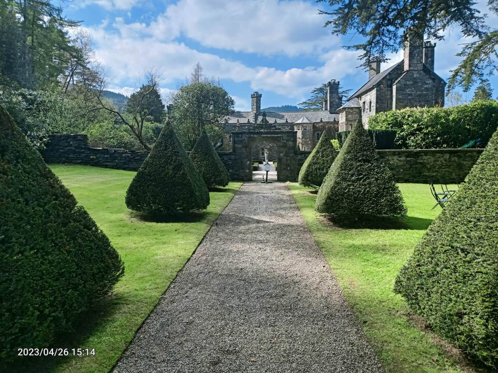 Stopped at Gwydir Castle – didn’t go in – saw peacock took photos outside and left – An example of a fortified manor house dating back to c1500. There have been fortifications associated with this site since AD 600. The turret was added around 1540 and John Wyn ap Maredudd’s initials can be seen above the main entrance in the courtyard gatehouse along with the date of 1555. The surviving buildings date from around the year 1500, and there were alterations and additions in c1540, c1600 and c1828, https://en.wikipedia.org/wiki/Gwydir_Castle
