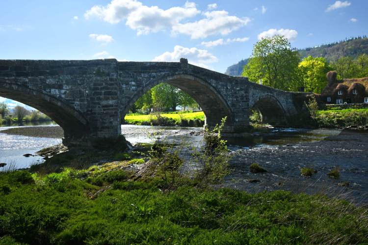 Llanrwst’s three-arched bridge across the Conwy, built in 1636. It leads across the clear-flowing waters to Tu Hwnt i’r Bont, a beautifully restored 15th-century house now owned by the National Trust. Click through the images below – not auto play – so you have time to read the poems and other stuff.