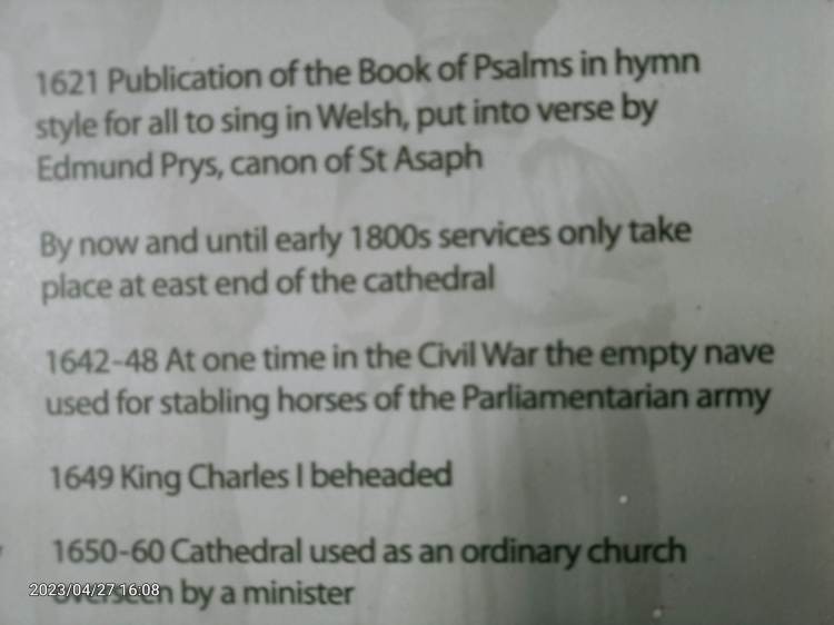 I had read about and wanted to see he Cathedral Church of Saints Asaph and Cyndeyrn, commonly called St Asaph Cathedral The cathedral dates back 1,400 years. One of the things that is significant about this forever old church is that the original translated Bible in Welsh (1588) is there. The slideshow below is not on auto changing stuff – to give time to read at your own pace.