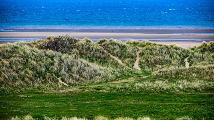 We climbed up the dune for this picture of the lighthouse, called Point of Ayr.