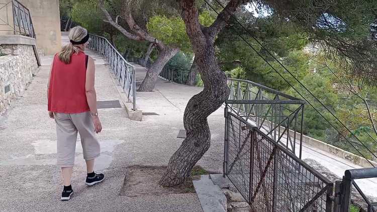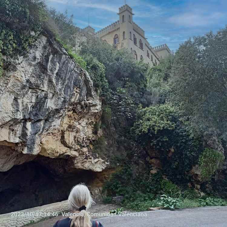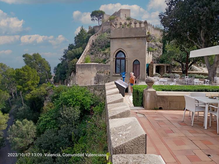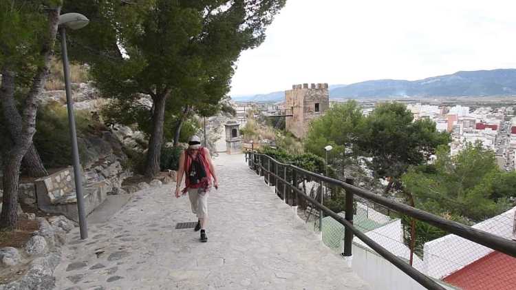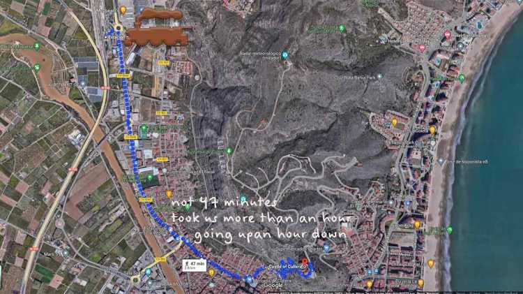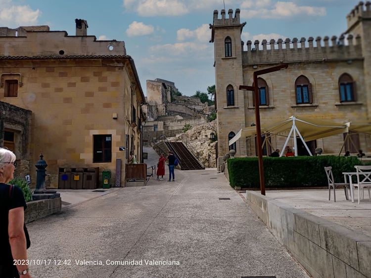 The first thing we checked was. “Is there a bus to the top where the castle is?” In the summer on Sundays, was there answer so I said to Narda it really is only a short walk up the hill. She didn’t believe me but being the good sport, she is we tromped up eventually getting on a bit of a steep climb thought there was a roadway which made it much easier (I thought) than the overgrown rocky straight up path we did for the previous castle. We did our stops and an hour plus later got to the top. Toured the castle, saw the seaside town part of Cullera on the other side walked down a very long road to the seaside – got a drink – took a rest – got a bus back to the train. See our video – https://youtu.be/UTZoqIgakKE