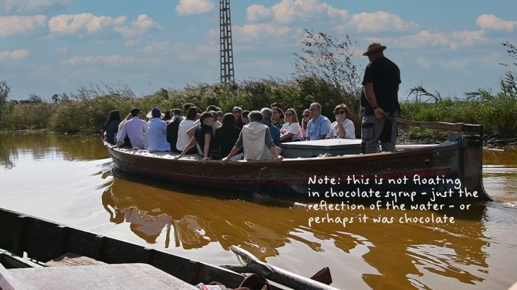 The boat ride took some getting to. Waiting for an overdue bus which took us down the coast to a rice field where the paella tradition began. Terrell had purchased a package deal, including a boat tour of the large lake and the meal with dessert and a beer.