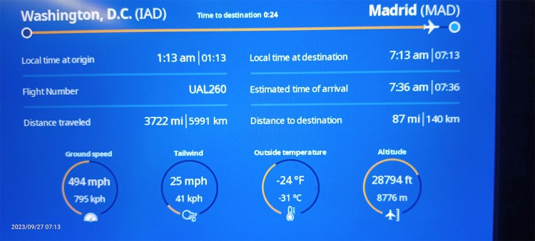 Leaving the family is always hard. We will miss this beautiful family. We took our time with a bus and then a train ride to Dulles on Tuesday Sep 26. They have finally finished the complete route, and it’s great. The entrance to the airport is new and efficient, taking you straight in the airport. Flight to Madrid, easy, just 6 ½ hours overnight