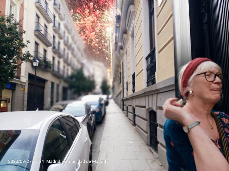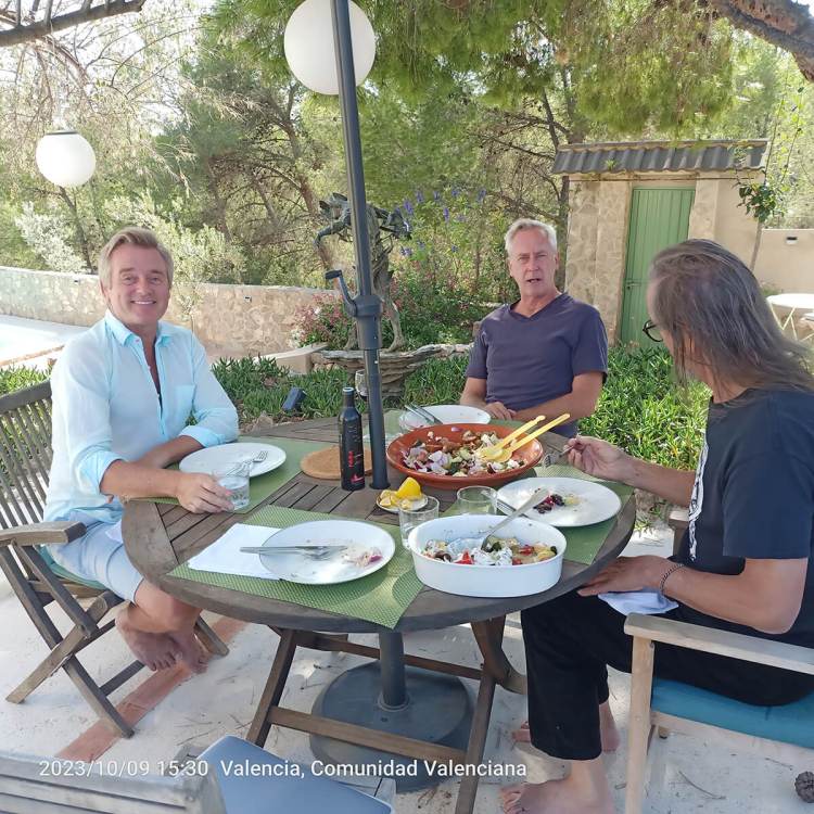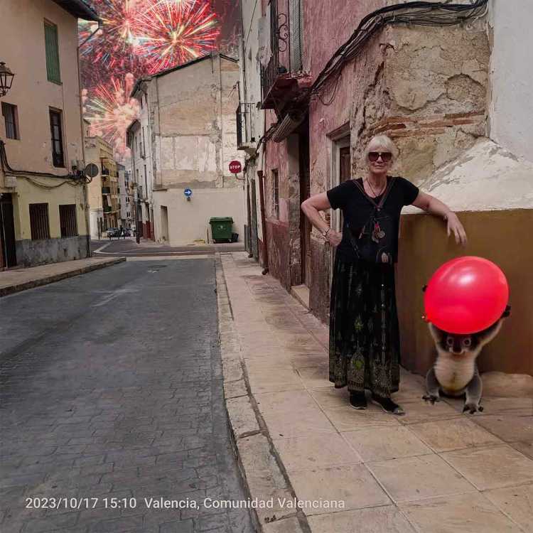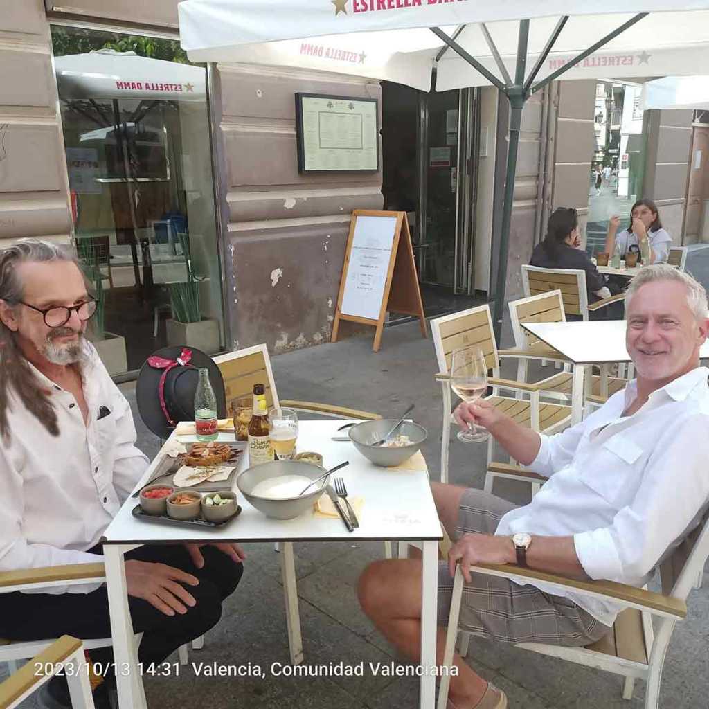 October 09 is Valencia Day – people generally go nuts, we left town to visit Ian Gale and his husband Kees in their country home. However, the day before we went to the old town, City Hall Square, caught up with Fred and Chantal to watch the daytime fireworks which were not actually fireworks but instead noisy firecrackers or whatever is so loud.