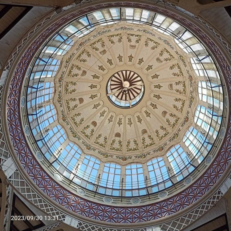– so we took the train back home. We went through Valencia North train station, built 1906 – 1917, several times. So many people rushing through, few seem to notice the room alongside it – not sure what it is for, but it was quite grand. The difference between being retired, slowed down, usually lost, spaced out staring at everything and busy rushing through life not seeing much is rooms such as this get bypassed.