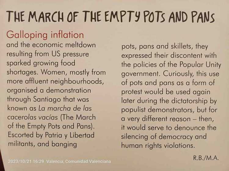 Cacerolazos began in Chile in 1971 in protest at food shortages during the Salvador Allende administration, with the empty pots symbolizing the difficulties of households in obtaining enough food to feed families. According to the internet. The statues represent these protests. the internet