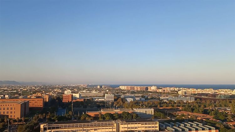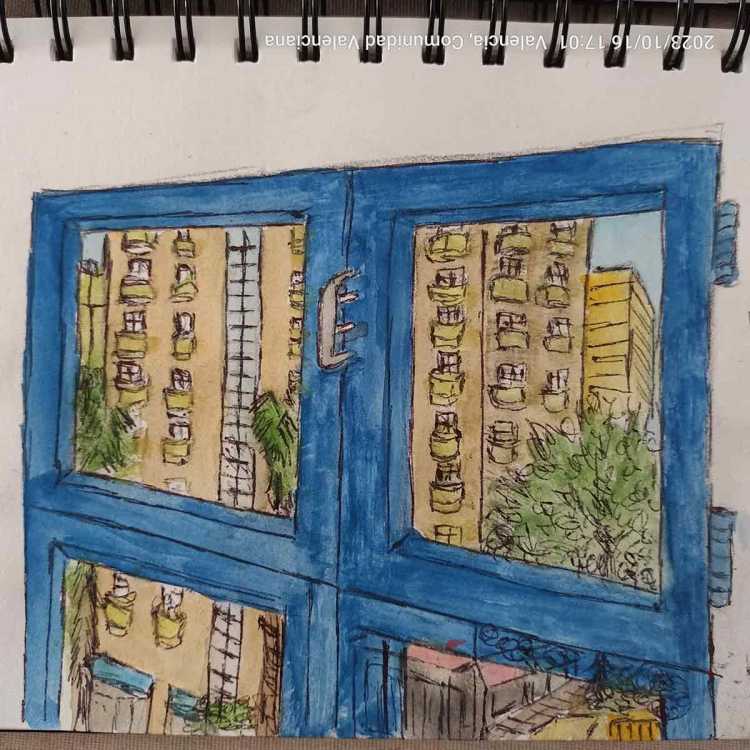 The train station we would take often during our month stay was Valencia Station North which we took bus #81 from our local stop, to there. Later more on that. Perhaps. Not having much luck with the local Uber-type of apps we grabbed a cab to this groovy building. Our flat is on the fourth floor of an 18-story building with a glass elevator going to the top. Narda was nervous about the ride up, but I loved it giving a view out to the sea.