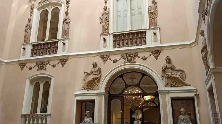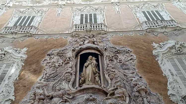 The palace was built in Gothic style in the 15th century and then extensively remodelled in the 17th century in Baroque and Rococco style. The exterior is lavishly decorated and includes a doorway surrounded by carvings of Ignacio Vergara, a Valencian sculptor of the 18th century. the internet